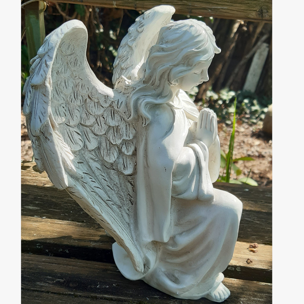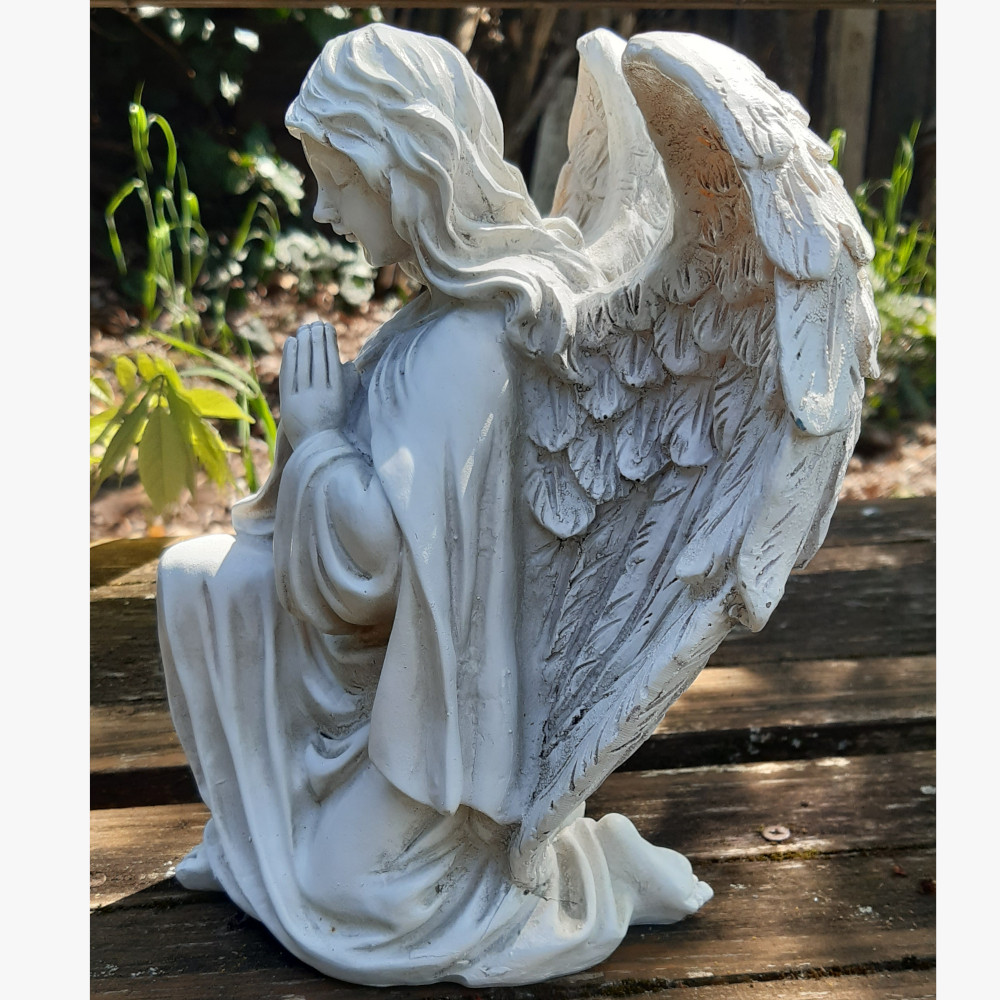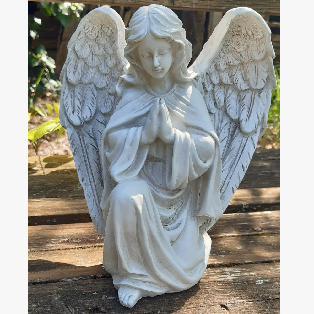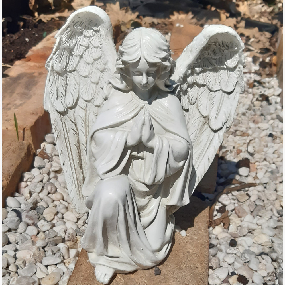 23 cm-es imádkozó, kőszínű angyal. Az angyalok műgyanta és kőpor keverékéből készültek.Magassága: 23 cmAnyaga: műgyanta és kőpor keverékeSzíne: festett