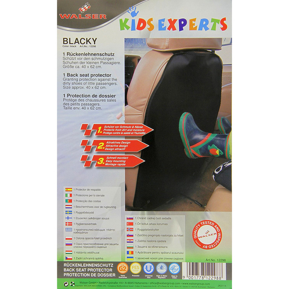 Kifejezetten az első ülések háttámlájára tervezve, védelmet nyújtva a "fürgelábú" utasokkal szemben.