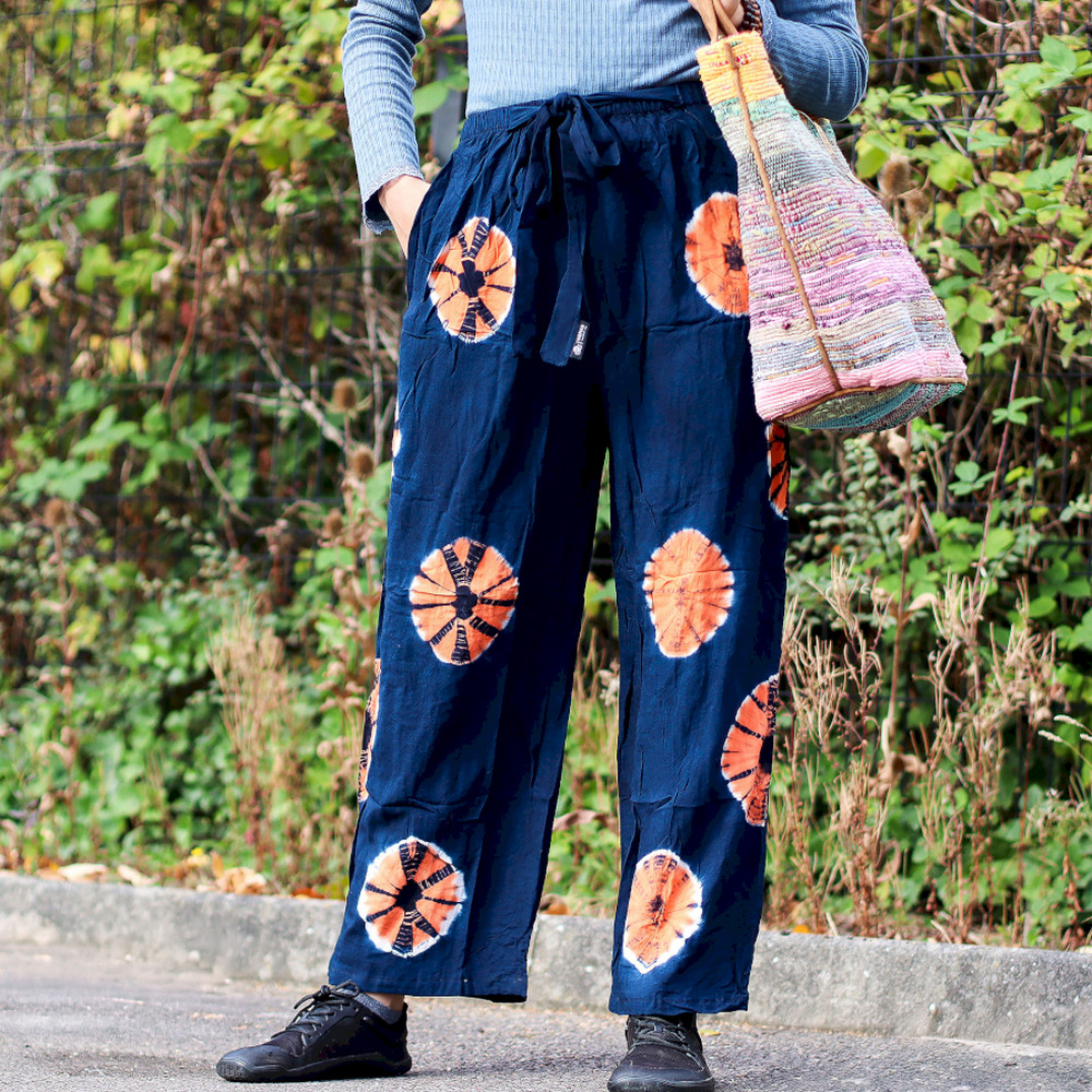 Japán Stílusú Nadrág - M - Kék, Narancs - Nomad Sari