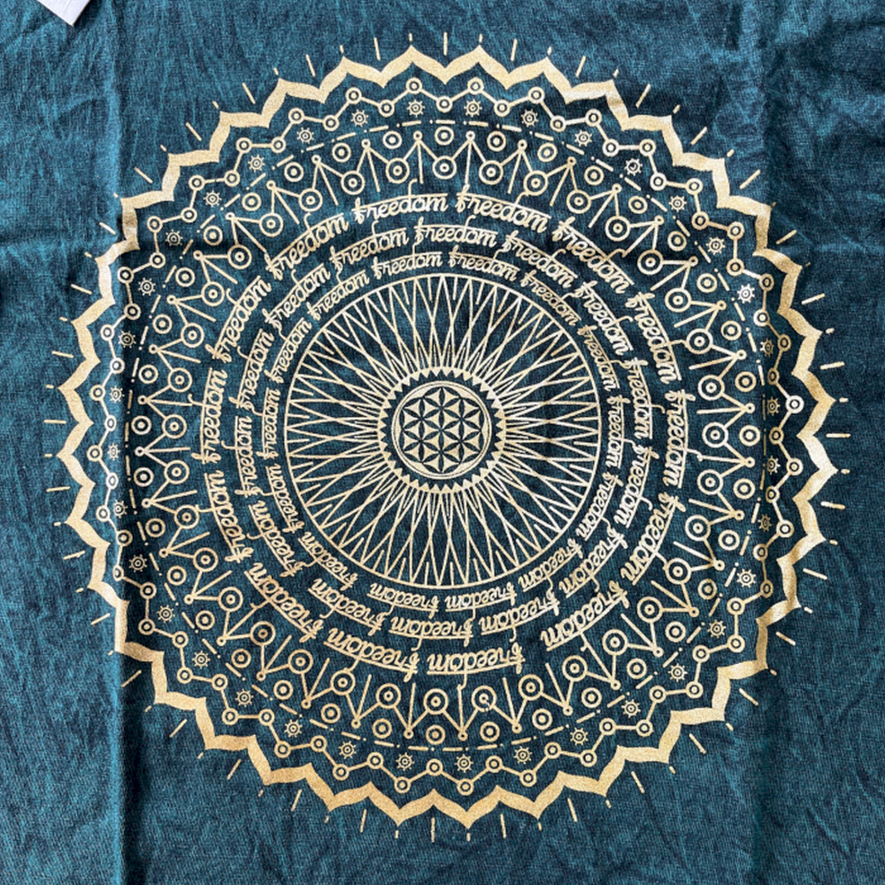 Kőmosott pamut póló - MANDALA - kék - S méret - NOMAD SARI