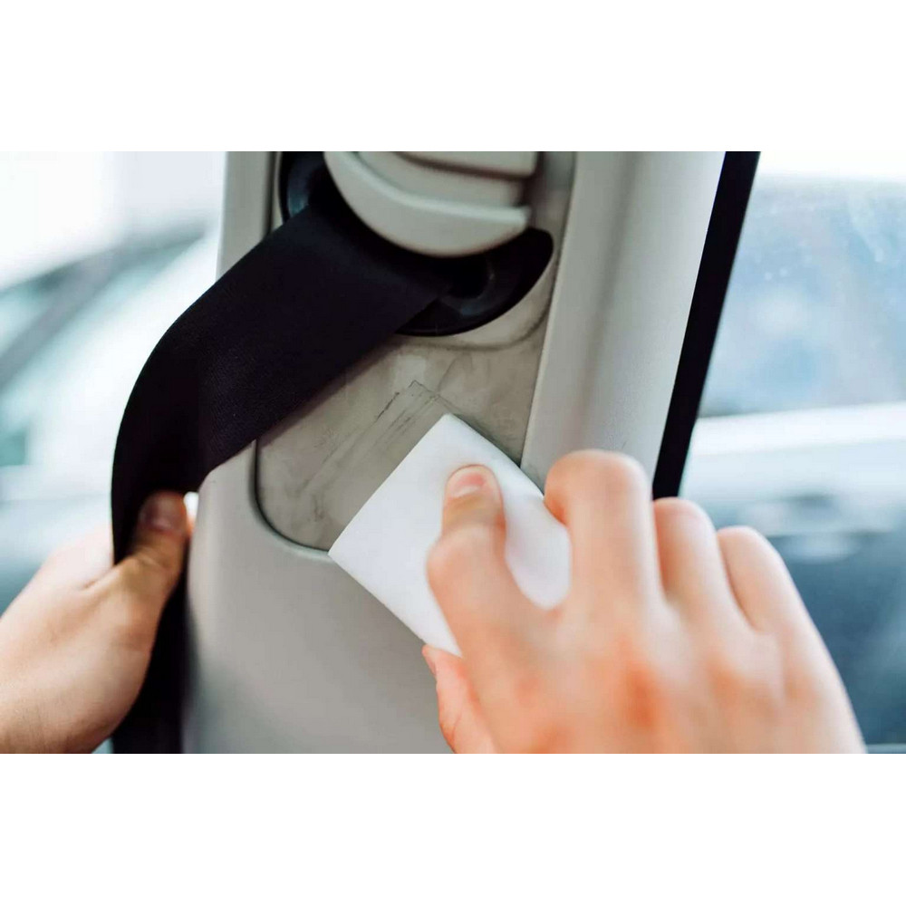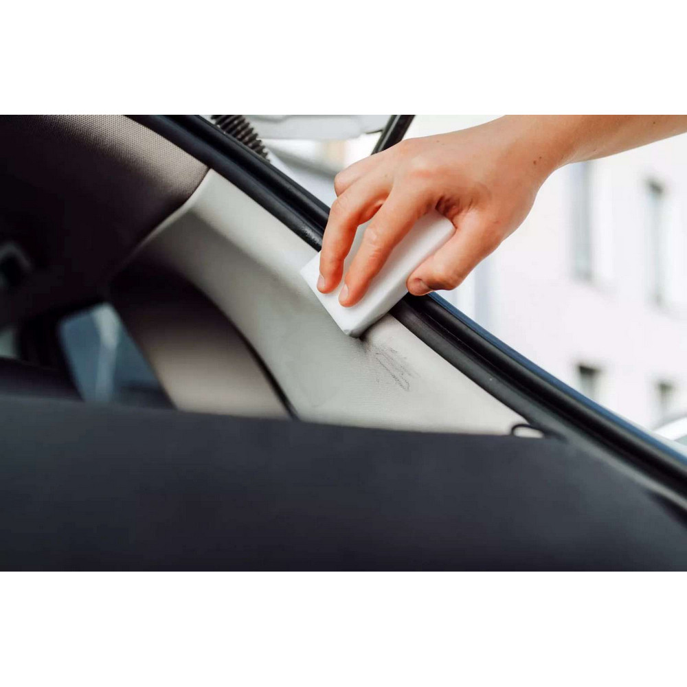A garázsban is találunk feladatot a mágikus szivacsnak. Ilyenek például az autónkon kívüli műanyag elemek. Polírozópaszta felhordásakor nehéz tökéletesen precíznek lenni és nem szennyezni ezeket a felületeket. Ekkor a melamin szivacs megbízható ereje jön segítségünkre. Könnyen kezeli és eltávolítja a maradványokat. Ugyanez igaz az autónk összes többi műanyag felületére is. Ha véletlenül bepiszkolódnának, a mágikus szivacs segítségünkre lesz.