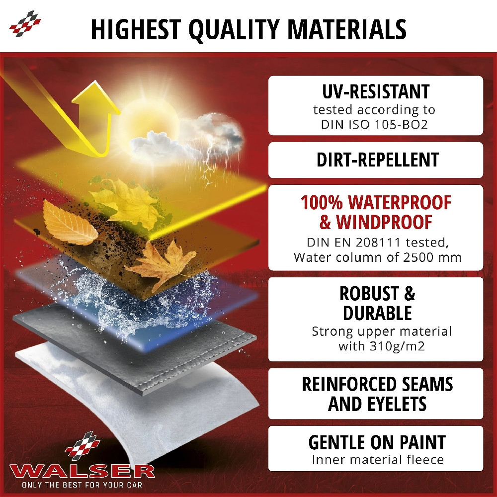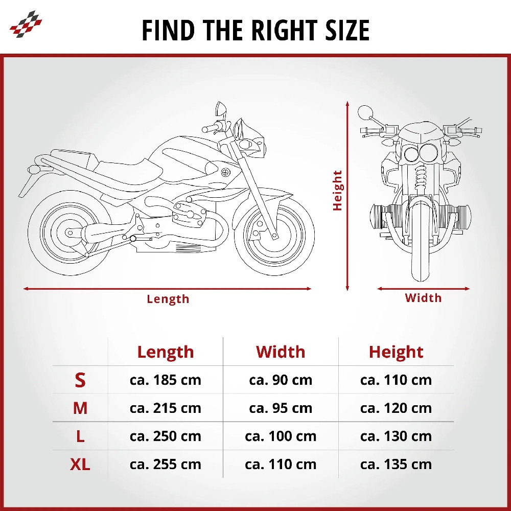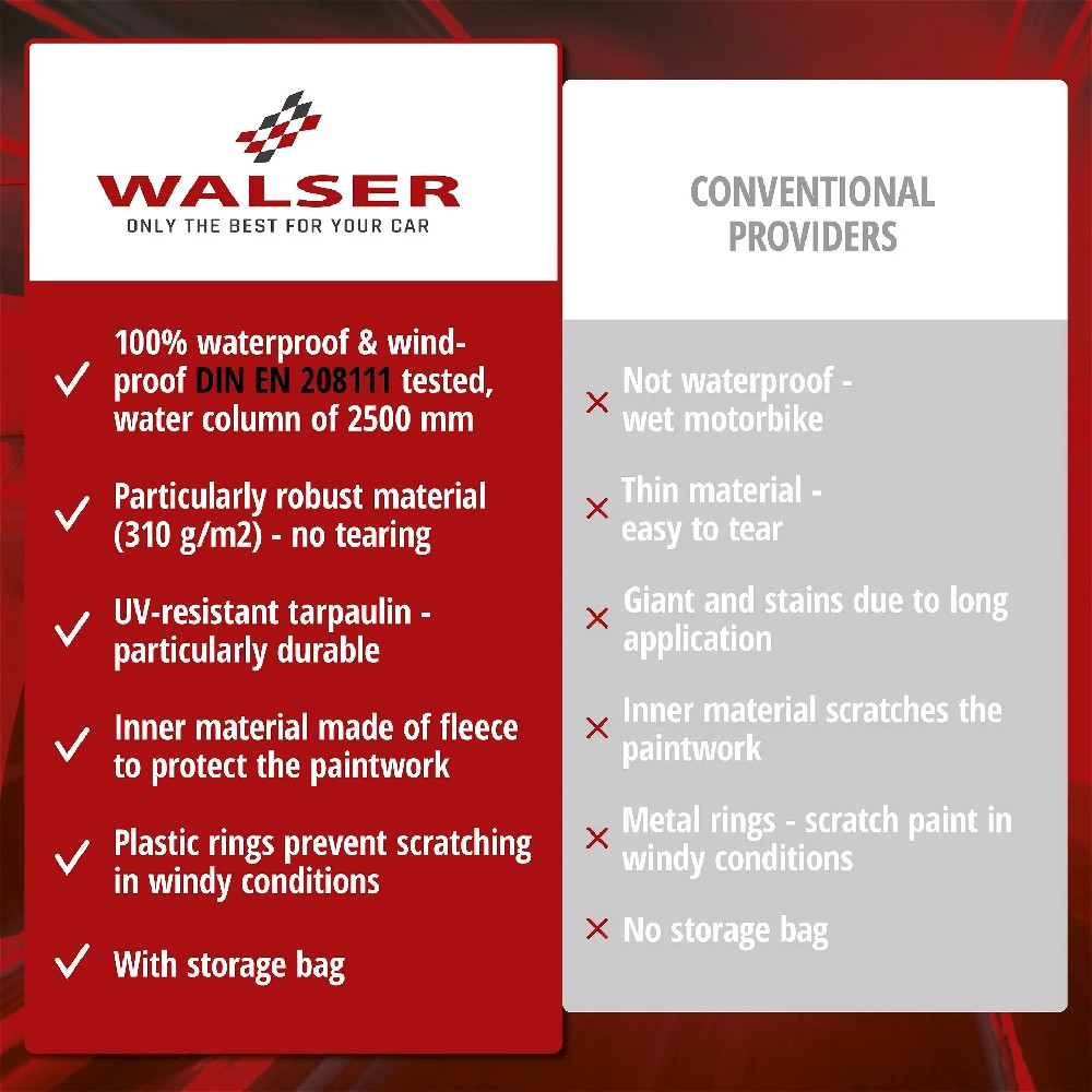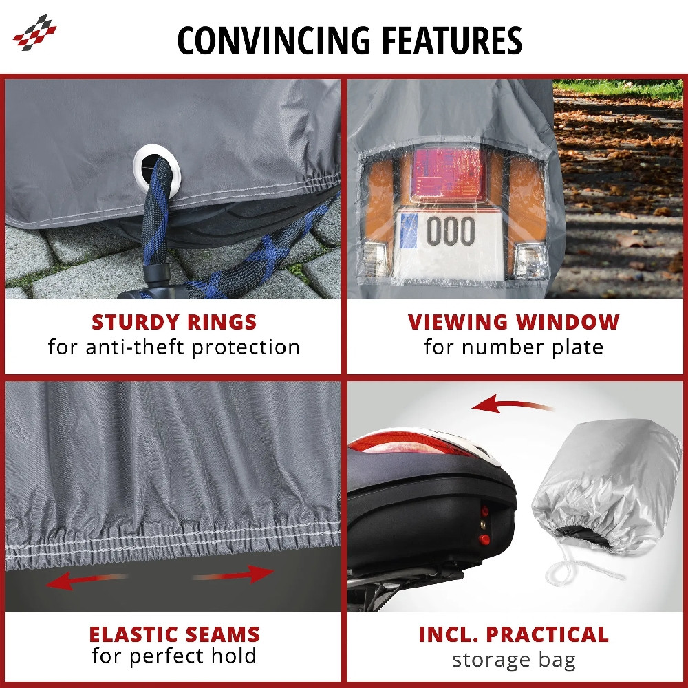 A termék kiváló minőségű PVC anyagból készült, amely egyben időjárásálló, vízálló és még télálló is. A fényezésbarát belső rész védi motorkerékpárja felületét is. Így nyugodtan kint hagyhatja kedvenc gépét, tökéletesen védett hó, eső, szennyeződés és nap ellen.