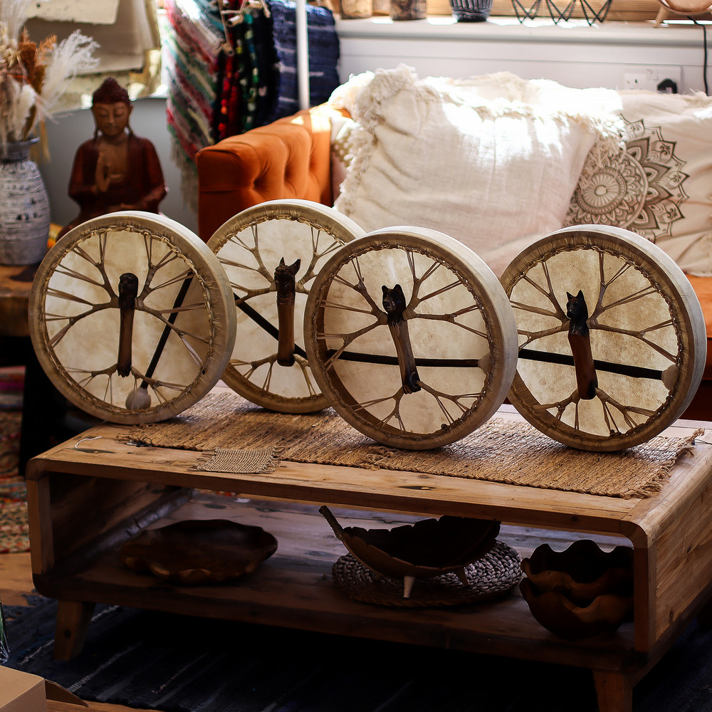 A medve szelleme - sámándob egy gyönyörű, kézzel készített, 40 cm-es keretes dob, amely ötvözi az erőteljes hangzást, a gazdag szimbolikát és a szakértő kézműves kidolgozást. Indonéziában készült tartós akácfából és valódi kecskebőrből, ez a dob kézzel pumpálható, hangolható kerettel rendelkezik. Mély, rezonáns hangokat produkál, amelyek tökéletesek, meditációhoz, szertartásokhoz és hangterápiás gyakorlatokhoz.