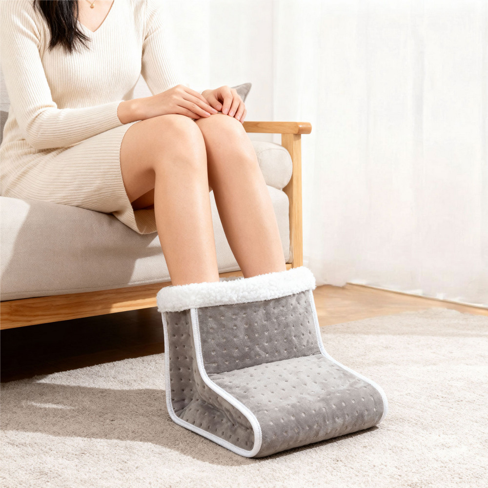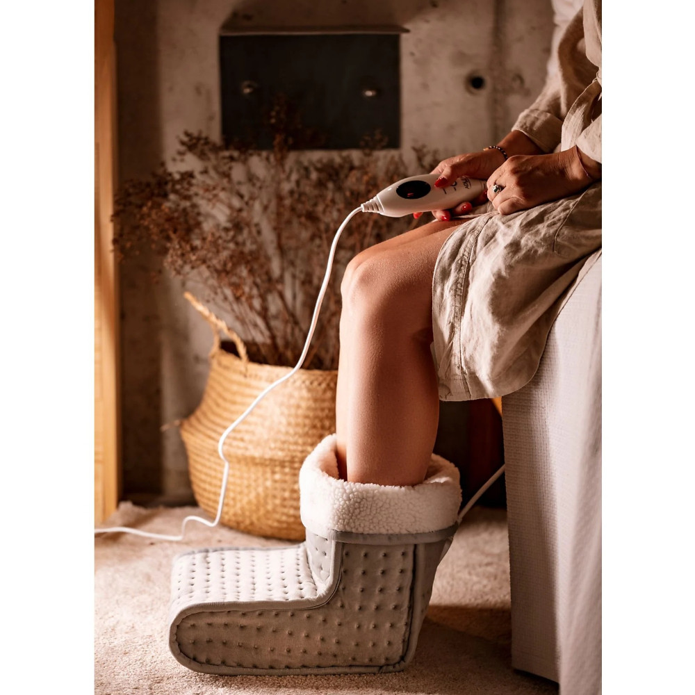 A lábmelegítő tökéletes megoldás azok számára, akik könnyen megfáznak, és bármilyen korban keringési problémákkal küzdenek. A készülék lehetővé teszi a fűtési hőmérséklet beállítását az 5 fűtési szint egyikének kiválasztásával. A melegítő méretét a lábakhoz igazítják a 46-os méretig. A készülék 60 perc elteltével automatikus kikapcsolási funkcióval van felszerelve, hogy megakadályozza a lábak túlmelegedését. A külső melegítőt puha plüssből varrták, belülről pedig hangulatos szintetikus gyapjúból. A szintetikus gyapjú belső bélése kivehető, lehetővé téve a higiénia érdekében. Egészségügyi előnyök: a lábmelegítő kiváló segítség azoknak, akik rossz vérkeringésben vagy ízületi gyulladásban szenvednek, mivel a meleg elősegíti az izmok ellazulását és a vérkeringés javítását. Túlmelegedés és túláram elleni védelemmel rendelkezik.